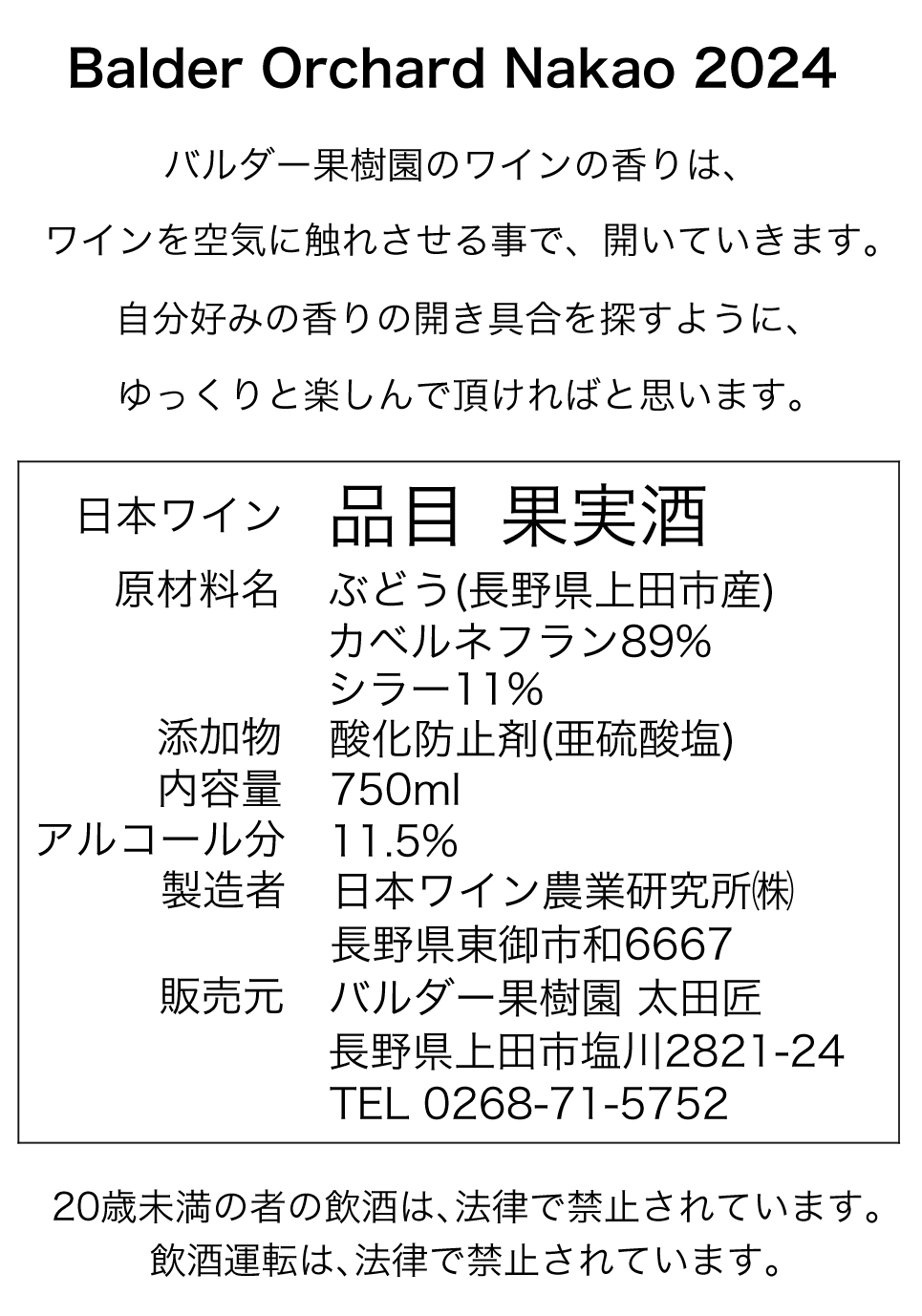 Balder Orchard Nakao 2024は750ml瓶で、税込み2970円です。